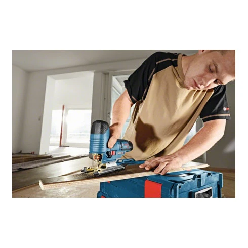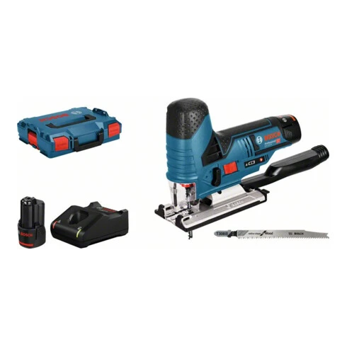 - Scie sauteuse sans fil GST 12V-70; Scie sauteuse sans-fil professionnelle 12 V extrêmement compacte et légère; Scie sauteuse sans-fil légère et extrêmement compacte pour une maniabilité parfaite, y compris pour les coupes courbes; Performance élevée : progression de sciage rapide et grande autonomie de la batterie; Position de la poignée exceptionnellement proche de la ligne de coupe pour permettre une coupe particulièrement précise; Forme optimale pour un sciage confortable par le bas; Tour de poignée particulièrement petit pour un travail confortable et sans fatigue; Plaque de base robuste en aluminium avec semelle en plastique pour des caractéristiques de glisse améliorées et pour la protection des surfaces sensibles; Vue parfaitement dégagée sur la ligne de coupe grâce à l’éclairage LED puissant activable séparément; Système EMP (protection électronique du moteur) : protège le moteur contre les surcharges et garantit ainsi une longévité élevée; Système ECP (Electronic Cell Protection) Bosch : protège la batterie contre la surcharge, la surchauffe et la décharge profonde; Poignée étrier ergonomique à larges zones de revêtement Softgrip pour un travail confortable; Mouvement pendulaire à 3 positions pour des coupes rapides sans éclats