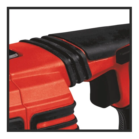 - La scie dispose d’une manipulation ergonomique grâce à des surfaces de préhension souples.
