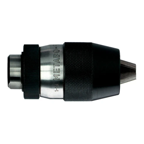 Serrage sans clé des outils sur les perceuses fixes ou à guidage manuel. Lorsque la pression de coupe sur la lame d’alésoir augmente, le mandrin se resserre de lui-même. Même après utilisation intensive, le mandrin peut être ouvert facilement à la main. Pour utilisation intensive. Uniquement pour les machines à rotation à droite. Ne convient pas au perçage à percussion.