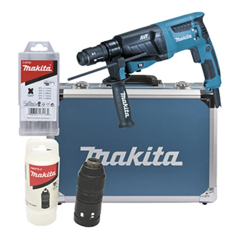 Le marteau combiné léger et efficace Makita pour SDS-PLUS en coffret aluminium HR2631FT13 convainc par ses performances de perçage élevées et sa technologie anti-vibration.