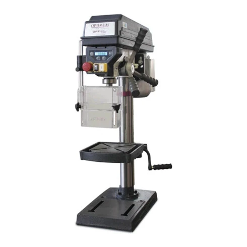 entraînement des courroies trapézoïdales par poulies à courroies en aluminium (couvercle avec interrupteur de sécurité) · bouton d’arrêt d’urgence coup de poing · interrupteur de sécurité selon IP 54 · butée de profondeur · table de perçage inclinable sur 45° · hauteur de la table de perçage réglable au moyen d’une crémaillère avec rainures en T diagonales et rigoles d’eau de refroidissement sur tout le pourtour · alésage de la broche de précision · très haute précision de concentricité · broche de perçage avec roulements à bille de précision · disque de protection réglable en hauteur avec disjoncteur de protection ·