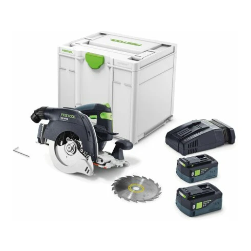 - 2 x batterie BP 18 Li 5,0 ASI, chargeur rapide SCA 16, lame de scie circulaire WOOD STANDARD HW 160×1,8×20 W18, clé Allen OC 5, Systainer SYS3 M 337