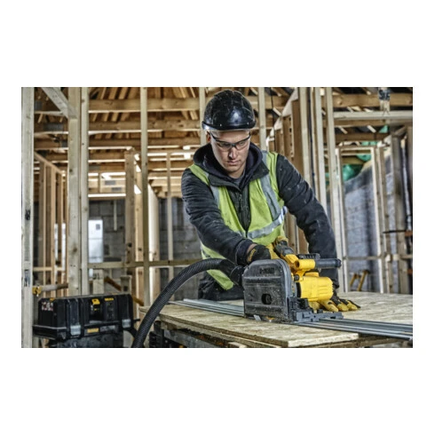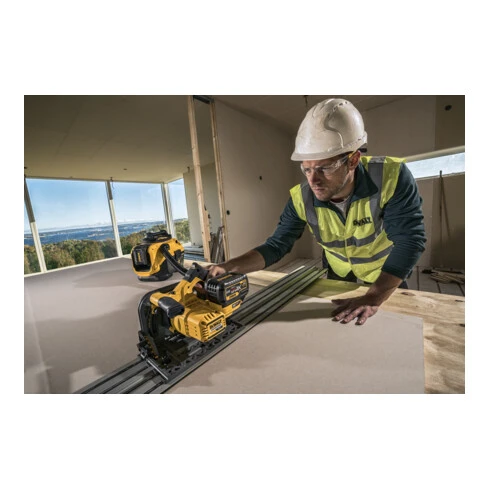 - Avec patin de scie spécial pour les rails de guidage DEWALT