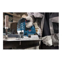 Scie sauteuse GST 150 BCE; La plus puissante de sa catégorie; Grandes réserves de puissance également dans les poutres de bois grâce au moteur de 780 W puissant et résistant aux surcharges; Plaque de base extrêmement robuste qui résiste à la déformation lors de sollicitations extrêmes; Grande précision de coupe grâce au nouveau système de serrage de lame de scie sauteuse; Système de fixation des lames de scie sans outil pour un changement facile et rapide de la lame de scie; Poignée ergonomique avec surfaces Softgrip pour un grand confort d’utilisation; Mouvement pendulaire 4 positions pour un sciage fin à grossier; Présélection électronique de la vitesse;