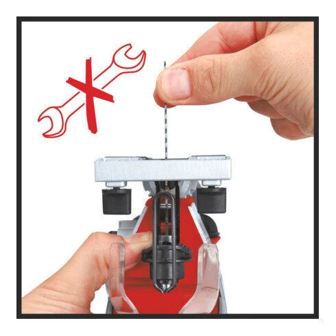 - La fixation universelle sans outil de la lame de scie permet de gagner un temps précieux, tandis que l’insert de glissement en plastique intégré protège les pièces fragiles.