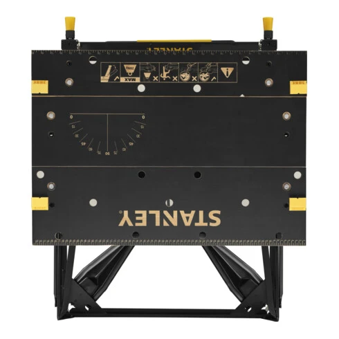 - STANLEY Workmate Deluxe avec plan de travail en bambou et construction de cadre en acier, particulièrement robuste et durable.